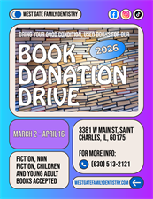Happy National Book Month! Your friends here at West Gate are supporting our esteemed local library, Saint Charles Public Library, to share the joy of literature with our community. Donate any fiction, non-fiction, child, and young adult book in good condition that you'd like to pass on to another fellow reader to enjoy. All donations will be sent over to the Saint Charles Public Library which will help promote literacy in our community!